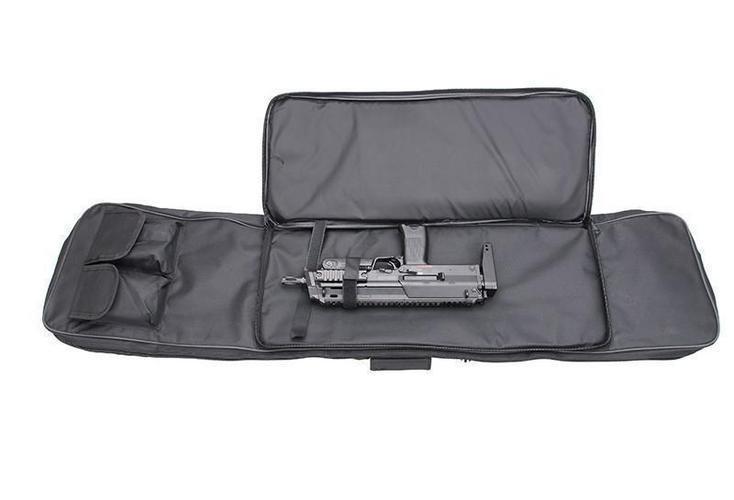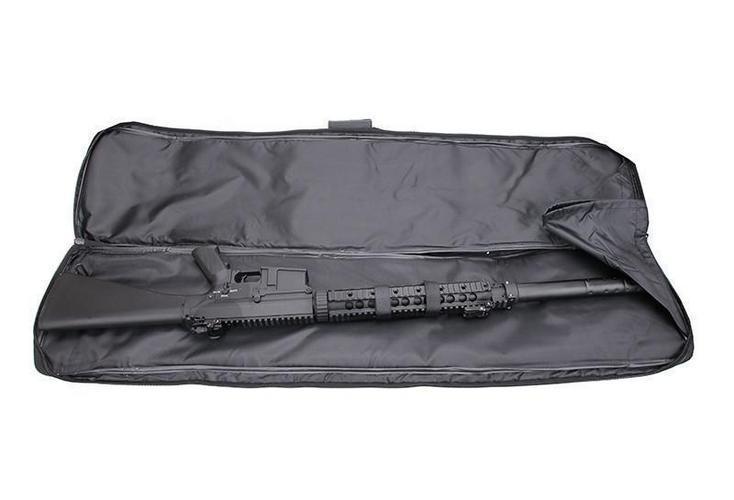 The GFC gun bag is a 1200mm long bag made of nylon. Inside the bag there is a fabric bag extension pouch, which makes it possible to carry 1300mm long weapons completely covered. Inside the largest main pocket there are two separate Velcro strap attachment points for the weapon being carried. On the front of the bag there is another pocket for a smaller weapon, measuring 620 x 260mm, and the smaller pocket, like the larger pocket, has two Velcro attachment points for the weapon.