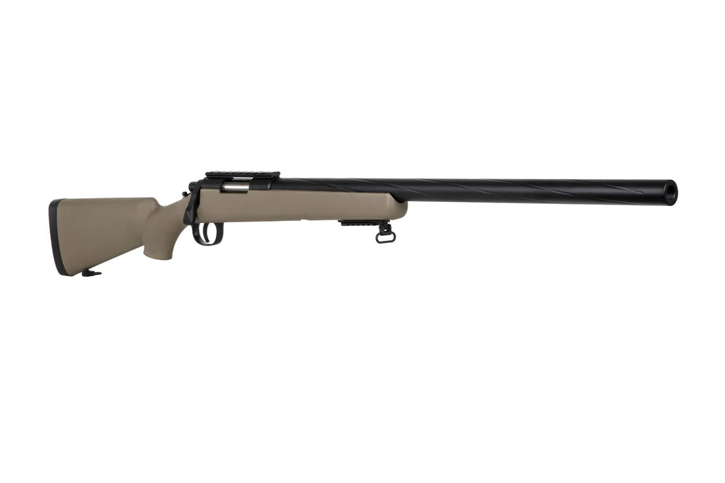 The SA-S12 sniper rifle is a spring-loaded bolt-action airsoft weapon that requires loading before each shot. The metal barrel and receiver are made of metal. On top of the receiver is a Weaver / Picatinny compatible rail for attaching a scope. The stock is made of durable plastic.