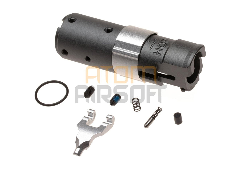 Action Army AAP01 CNC Hop-Up Unit is a top-tier upgrade for the AAP-01 GBB pistol. This one-piece CNC-machined aluminum hop-up unit provides precise and reliable adjustment, improving both accuracy and range.