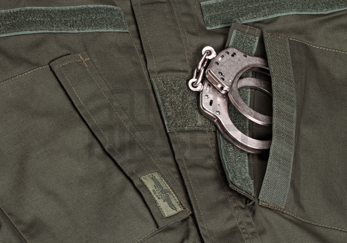 Takista löytyy kaiken kaikkiaan neljä taskua, kolme tarrapaikkaa arvomerkeille tai muille velcro-patcheille sekä paikat pehmeille kyynärsuojille. Molemmista hihoista löytyy tilavat tarrasulkeiset taskut, jotka on päällystetty velcro-pinnalla. Tämän lisäksi rinnan kohdalta löytyy vinoon ommellut tarrasulkeiset rintataskut.