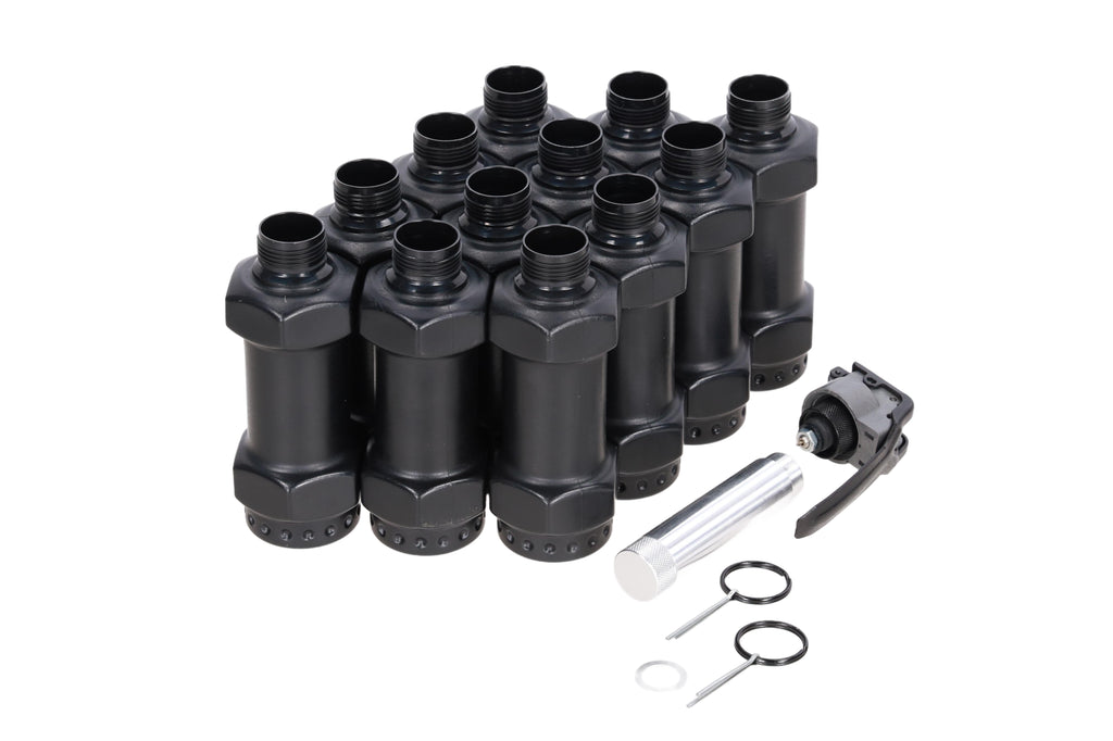 Specna Armsin 12 kranaatin setti. Kranaatit toimivat 12 g CO2 -patruunalla ja niiden päätarkoitus on tuottaa kovaääninen paukku, joka yllättää ja sekoittaa vastustajan. Malli on helppo kuljettaa liivissä tai vyöllä, ja rakenne on suunniteltu uudelleenkäytettäväksi.