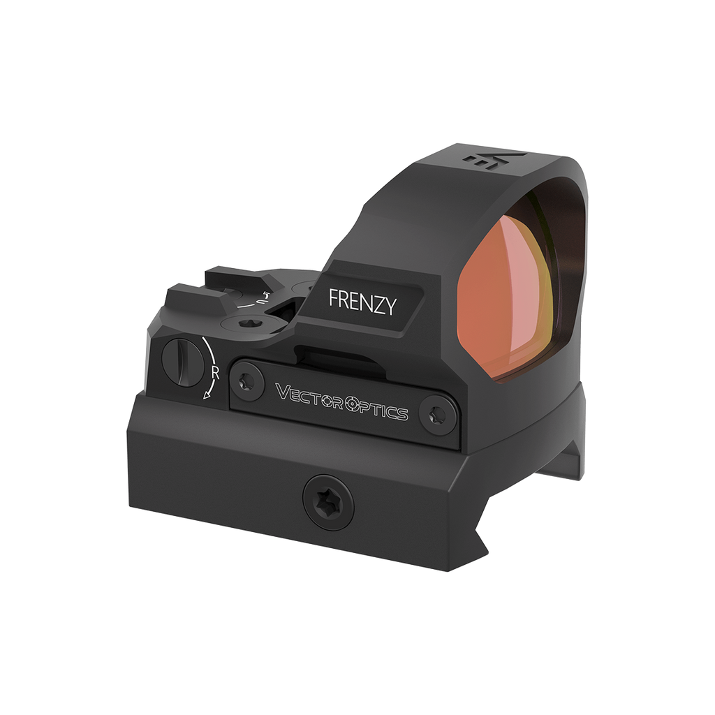 Vector Optics Frenzy-S FLEX 1x19x28 Red Dot Sight (SCRD-66) on erittäin kompakti, suurennukseton avomallinen punapistetähtäin, jossa on poikkeuksellisen suuri 19×28 mm linssi nopeaa kohteenottoa varten. 3 MOA punapiste on sopiva kompromissi nopeuden ja tarkkuuden välillä, ja kirkkaussäätö tarjoaa 11 tasoa (9 päiväkäyttöön + 2 NV-yhteensopivaa).