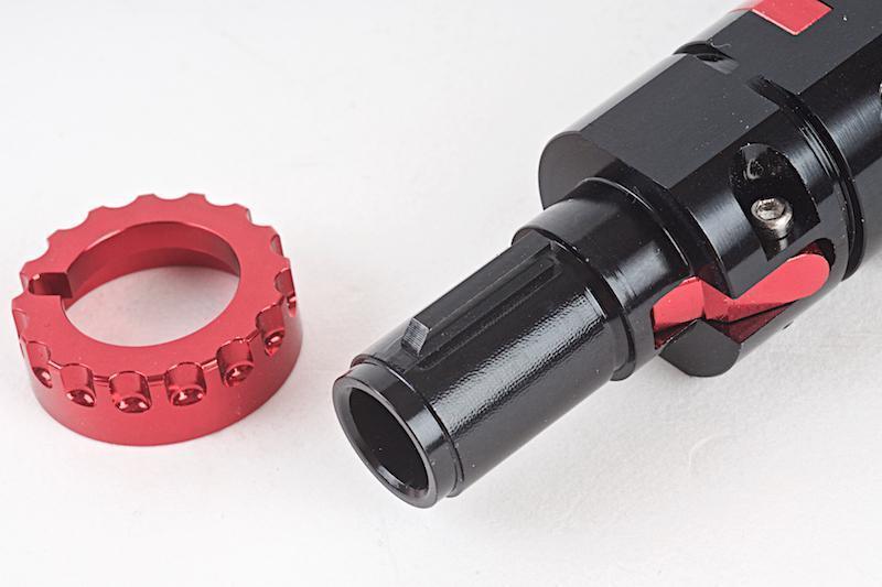 The Bullgear hop-up unit is the number one upgrade for M60 and PKM compatible airsoft guns. The Bullgear hop-up unit's hop-up lever is radically different from the original presser. In the Bullgear, the presser is in a horizontal position, just like in most other electric guns. The Bullgear hop-up unit corrects the problems caused by the original presser being in a vertical position and enables accurate and smooth threading of the bullet in M60/PKM model machine guns.