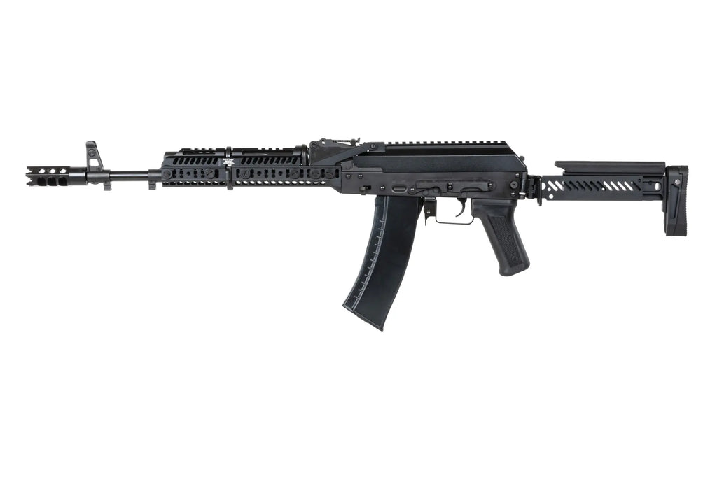 The LCT ZKS-74M AEG combines the traditional AK-74M design with modern Zenit-style accessories in one package, offering players a realistic and high-performance modern-style airsoft gun. The all-steel frame, CNC-machined aluminum parts, and folding stock make this gun an excellent choice for milsim enthusiasts and collectors who value a realistic feel.