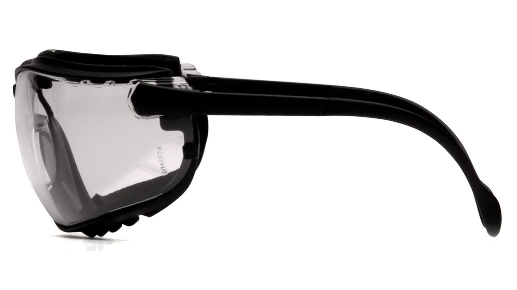 Pyramex V2G H2X Antifog is designed for use where protection and visibility must function flawlessly even in changing conditions. The lens is made of impact-resistant polycarbonate and its inner surface is treated with H2X Antifog coating, which effectively prevents fogging both in temperature fluctuations and physical stress. The clear lens retains natural color rendering and is suitable for both indoor and outdoor use.