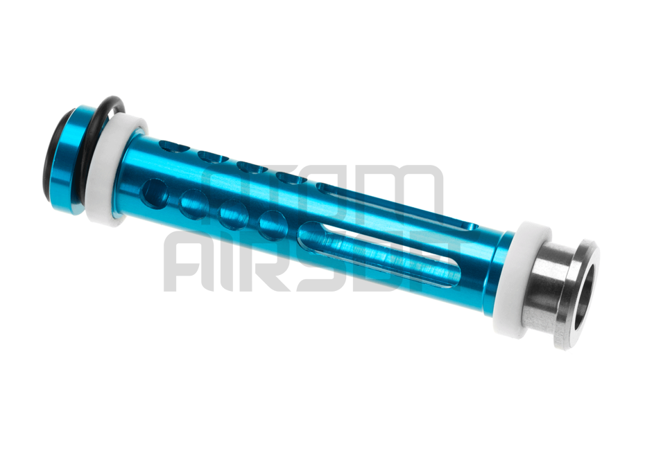 Action Army VSR-10 90 asteiselle jälkiasennettavalle liipasinkoneistolle suunniteltu viritysmäntä. Mäntä on valmistettu muutoin hienosti sinisellä viimeistelystä alumiinista. Virekynnen vastakappale ruostumattomasta teräksestä. Laadukkaiden materiaalivalintojen ansiosta tämä mäntä kestää raskaitakin virityksiä.