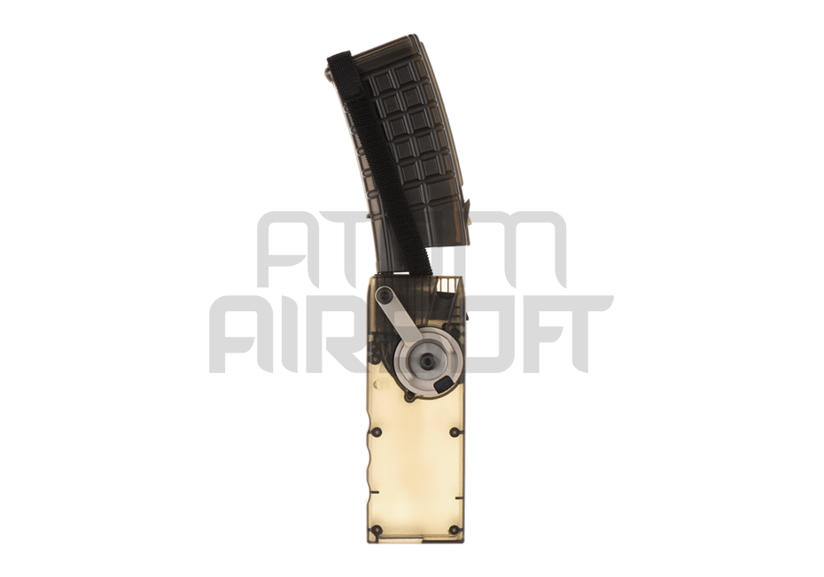 Airtech Studios Odin M12 universaali adapteri muuttaa M4 lippaille suunnitellun rullattavan lippaanlataajan sopimaan lähes airsoft-lippaiden kanssa.