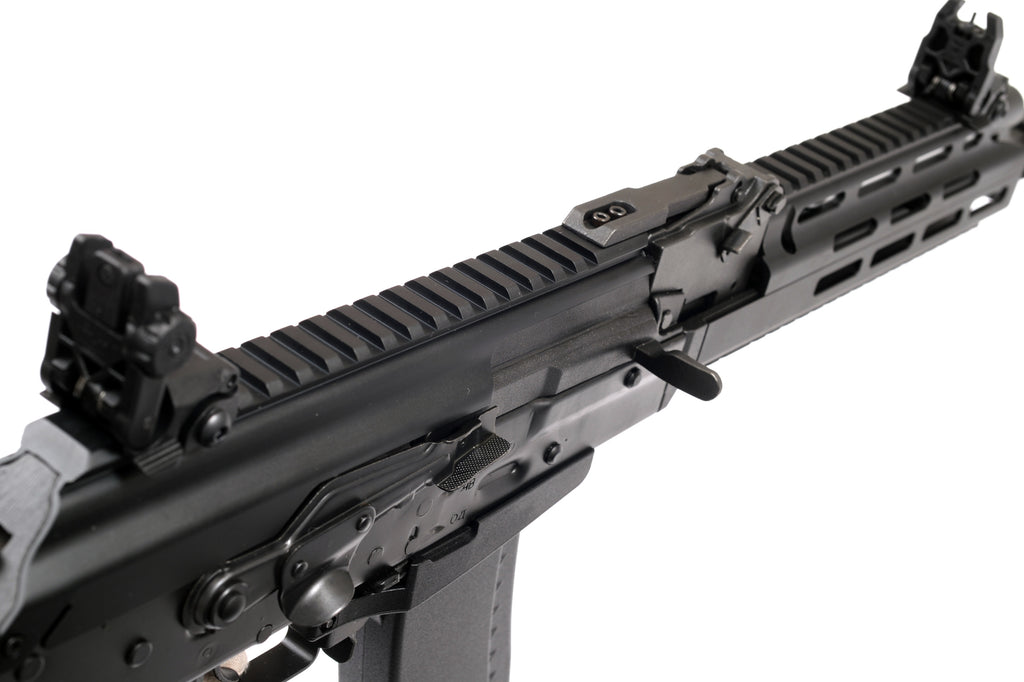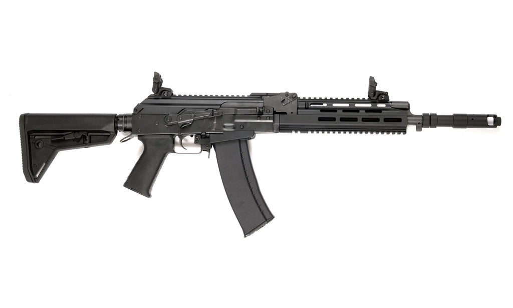 ARCTURUS AK74 Custom AEG sähköase mallintaa klassisesta AK74 rynnäkkökivääristä modernisoitua versiota. Ase on varustettu M-LOK ja RIS-yhteensopivalla etukädensijalla. Etukädensijan ylä- ja alapinnosta löytyy standardinmukainen picatinny/RIS kisko tähtäimien tai kahvojen kiinnittämiseksi. Etukädensijan sivut on pinnoitettu M-LOK yhteensopivilla koloilla. Picatinny/RIS-kiskoa on kiinnitetty myös aseen laatikonkannen päälle, joka mahdollistaa erilaisten tähtäimien kiinnityksen suoraan laatikonkannen päälle ilman sivukiilaa. Sivukiilaan kiinnittyvät tähtäimet tietysti sopivat aseeseen, sillä kattavasta picatinny-kiskovalikoimasta huolimatta sivukiila löytyy rungon vasemmasta kyljestä venäläismallisten tähtäimien kiinnittämiseksi. Aseen perän pituutta on helppo säätää M4-malleista tutun vetoperäratkaisun ansiosta.