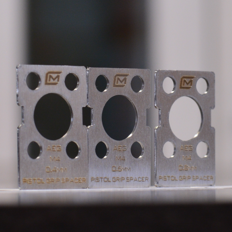 Kolmen aluslevyn sarja sähkötoimisille AEG M4/M16/AR15 yhteensopiville airsoft-aseille. Näiden säätölevyjen avulla voit säätää pistoolikahvan ja rataslaatikon kuoren välistä etäisyyden siten, että pistoolikahva ei kampea rataslaatikkoa väärään kulmaan pistoolikahvaa kiristettäessä. Täydellinen pistoolikahvan säätö mahdollistaa myös paremman moottorin säädön kohdalleen.