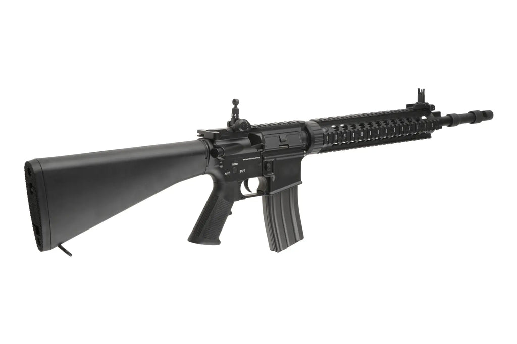 Specna Arms SA-B16 on laadukas M4/M16-tyylinen airsoft-karbiini, joka mallintaa MK12 MOD1 SPR mallista AR15-pohjaista asemallia. Tämä malli kuuluu Specna Armsin ONE™-mallisarjaan ja se on varustettu SAEC™-pikajousenvaihtojärjestelmällä sekä Eshooter Kestrel V2 Basic ETU:lla, jotka tuovat pelaajalle sekä tehoa että käytännöllisyyttä.