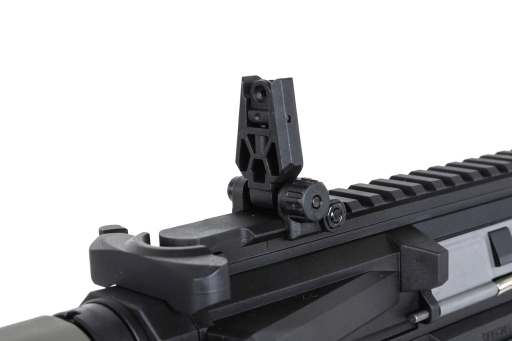Specna Arms SA-F05-RL FLEX™ Gen. 2 on kevyt mutta teknisesti edistynyt sähköase, jossa yhdistyvät kestävät polymeerirakenteet, moderni elektroniikka ja pelaajaystävälliset ratkaisut. Mallissa on ergonominen light-ops -tukki, M-LOK-yhteensopiva etukädensija sekä toimiva bolt catch -ominaisuus. Etuosan kiskot mahdollistavat lisävarusteiden kiinnittämisen ja ulkopiipun 14 mm CCW -kierre tekee äänenvaimentimen tai tracer-laitteen asentamisesta vaivatonta. Ase on suunniteltu kokonaisuudessaan tarjoamaan kevyen painon, mukavan käsiteltävyyden ja modernin suorituskyvyn pelikentälle.