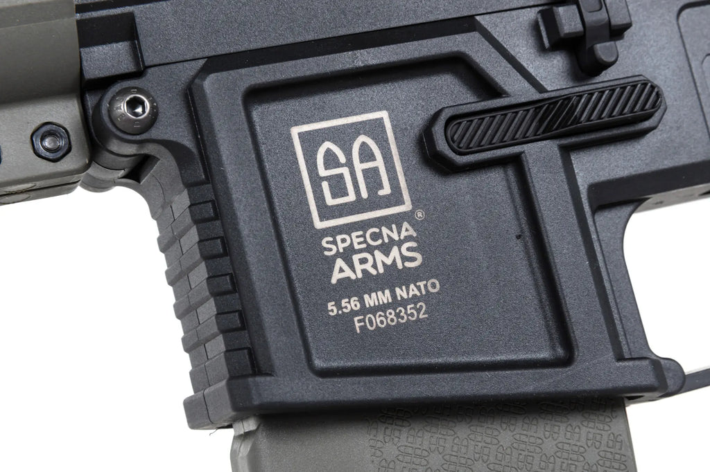 - Specna Arms HAL ETU™ Gen. 2: Magneettisilla antureilla toimiva liipaisin, ohjelmoitavat tulitilat, aktiivijarru ja muita pelillisiä etuja.