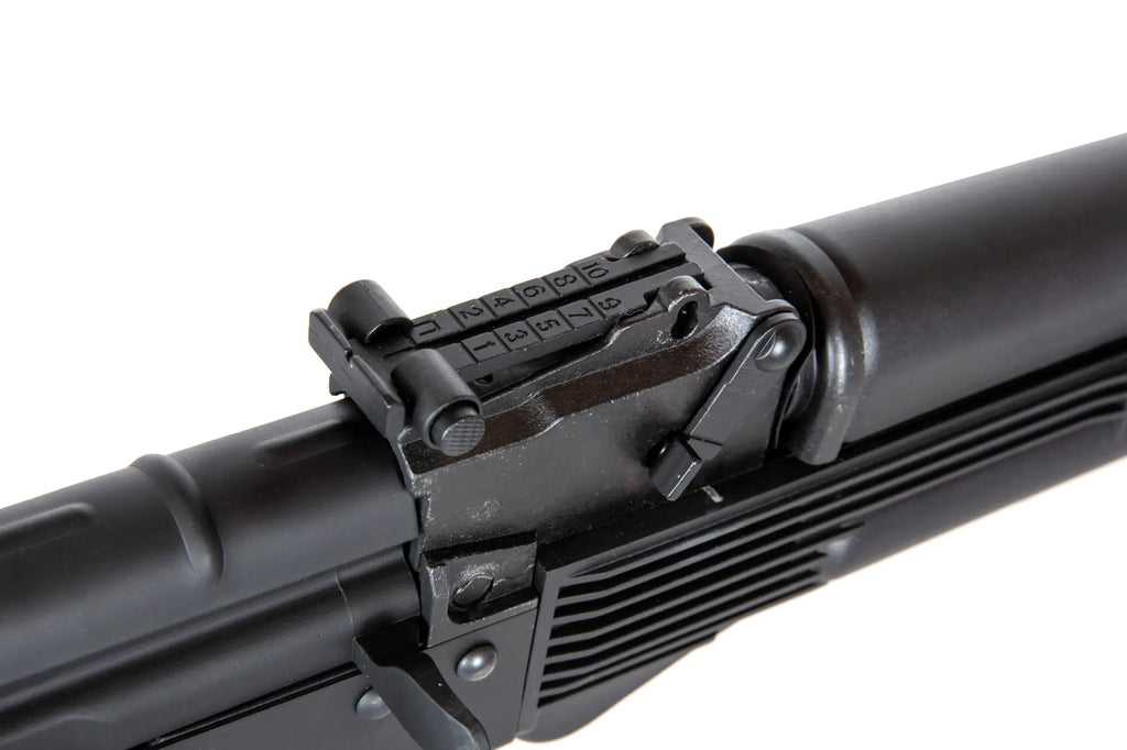 Specna Arms SA-J05 EDGE 2.0™ yhdistää realistisen teräsrungon ja modernin airsoft-aseen suorituskyvyn yhteen pakettiin. Tämä sähkötoiminen AK-replika on valmis peliin suoraan laatikosta ja varustettu edistyksellisellä GATE ASTER™ V3 MOSFET -yksiköllä, joka takaa erinomaisen liipaisinvasteen, ohjelmoitavat tulimuodot ja paljon muuta. SA-J05 erikoisuus on sen säädettävä AR-15 mallistosta tuttu vetoperä.